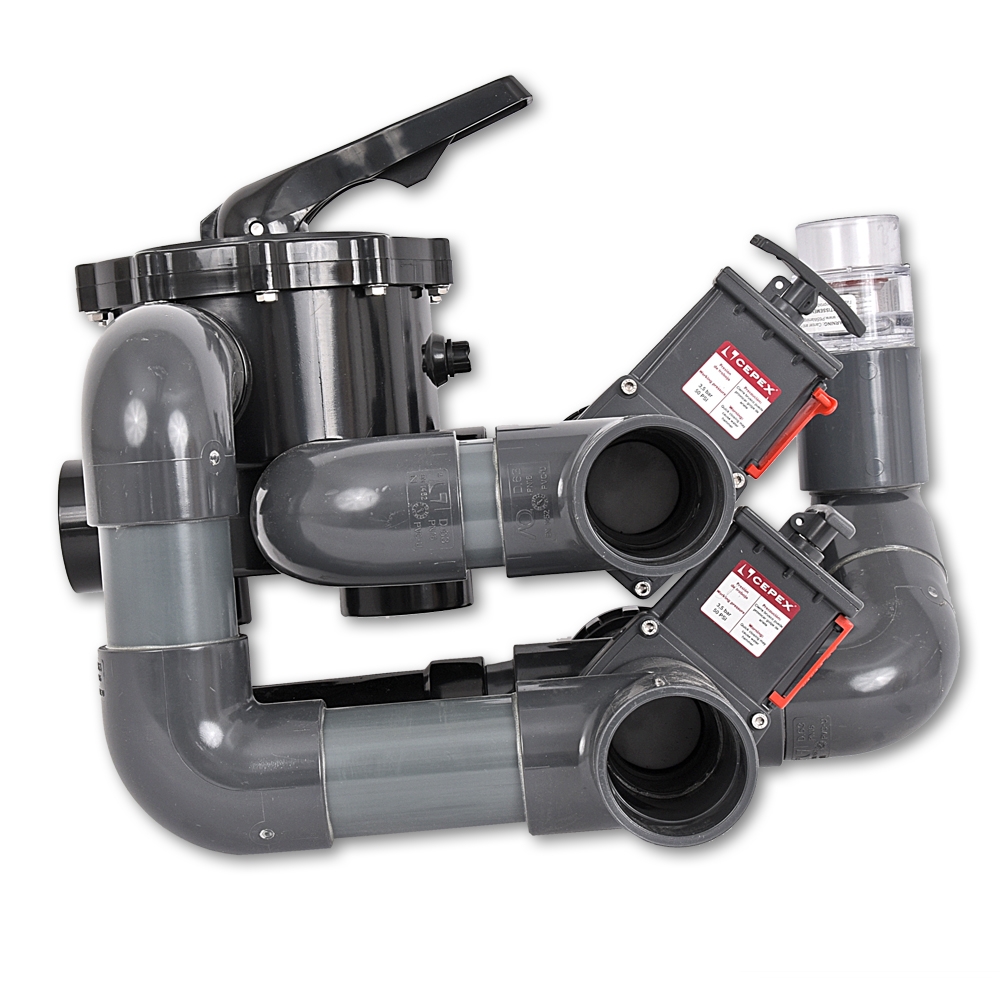 6-Wege Ventil inklusive Frontverrohrung für den Ultra Bead Filter neue Version.