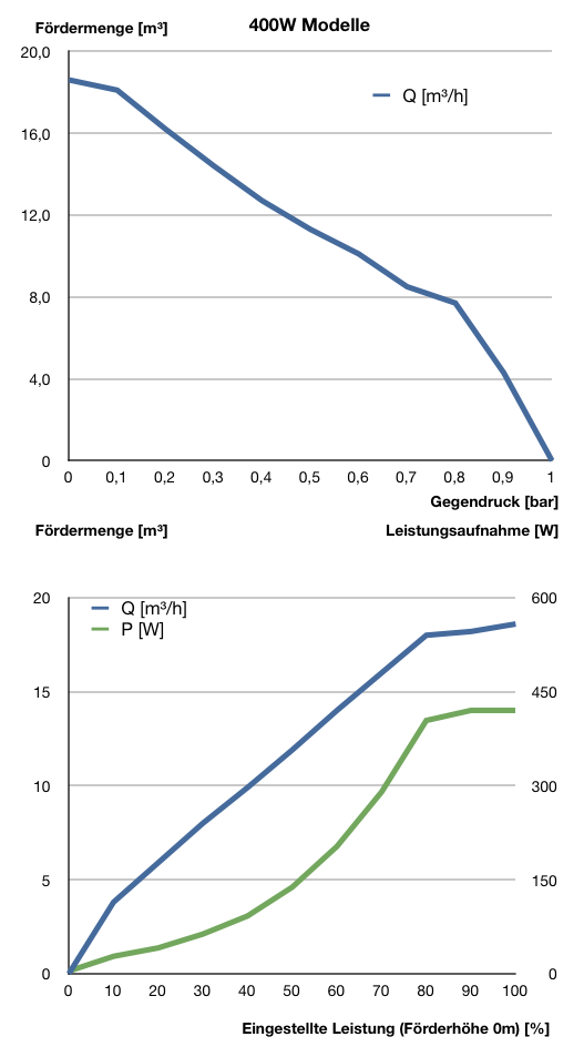 Wenn Sie bei den Diagrammen unterschiedliche Höchstwerte zu denen in unserem Katalog sehen, so ist dies gewollt. Der Hersteller testet die Pumpen an einem "extremen" Prüfstand mit den schlecht möglichsten Parametern. Wenn Sie die Pumpen zu Hause installieren, werden Sie immer bessere Werte erhalten als angegeben.