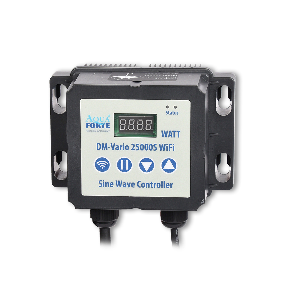 Die AquaForte DM-Vario WiFi Teichpumpe ist eine regelbare Teichpumpe mit einem externen Steuergerät - jetzt mit WiFi und Timer. Diese Pumpen verfügen über ein eigenes Wi-Fi-Signal, so dass sie ohne Routersystem funktionieren. Bei der Erstinstallation wird ein Heimnetzwerk benötigt. Mit der kostenlosen iOS- oder Android-APP lassen sich die Pumpen in Bezug auf Durchfluss, Ein/Aus-Status und Timer vollständig steuern.