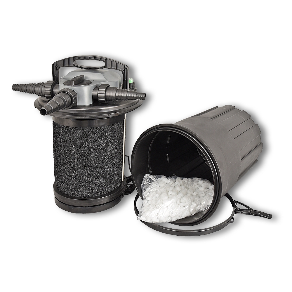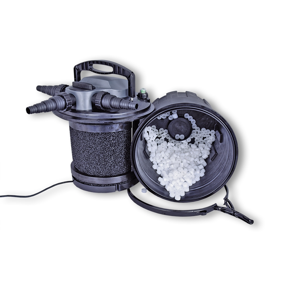 Die AquaForte Druckfilter mit integrierter UV-Lampe (CBF 12 - 24 Watt UVC; CBF 15 - 36 Watt UVC) ist für kleine Teiche und Quarantänebecken ideal.