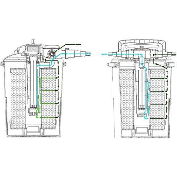 Die maximale Pumpenleistung (Durchflussrate) beim CBF 12.000 beträgt 6500 Liter pro Stunde und beim CBF 15.000 liegt Sie bei 8.000 Liter pro Stunde.