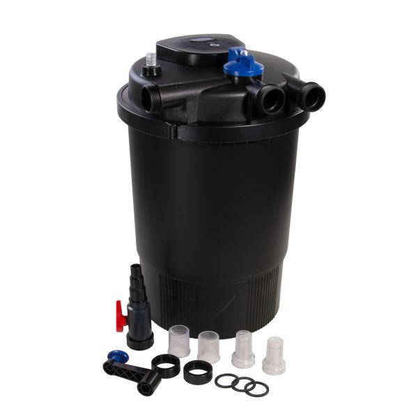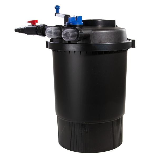 Die AquaForte Druckfilter mit integrierter UV-Lampe (GPF 20000 - 36 Watt UVC; GPF 30000 - 55 Watt UVC) ist für kleine Teiche und Quarantänebecken ideal.