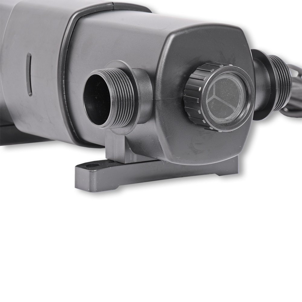 • Spiralförmiger Innenraum, damit das Wasser besser mit der UVC-Strahlung in Kontakt kommt