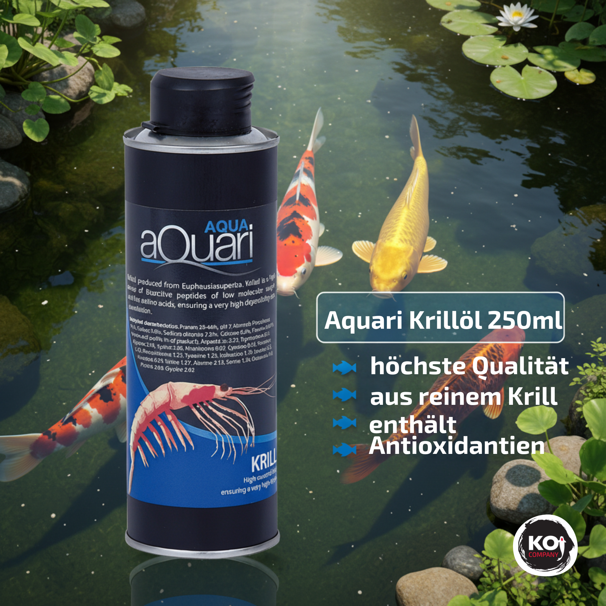 Dieses Öl wird nur aus Krill hergestellt und gewährleistet dadurch höchste Qualität. Reichern Sie damit Ihr Futter an, um Ihre Koi aktiv zu unterstützen.