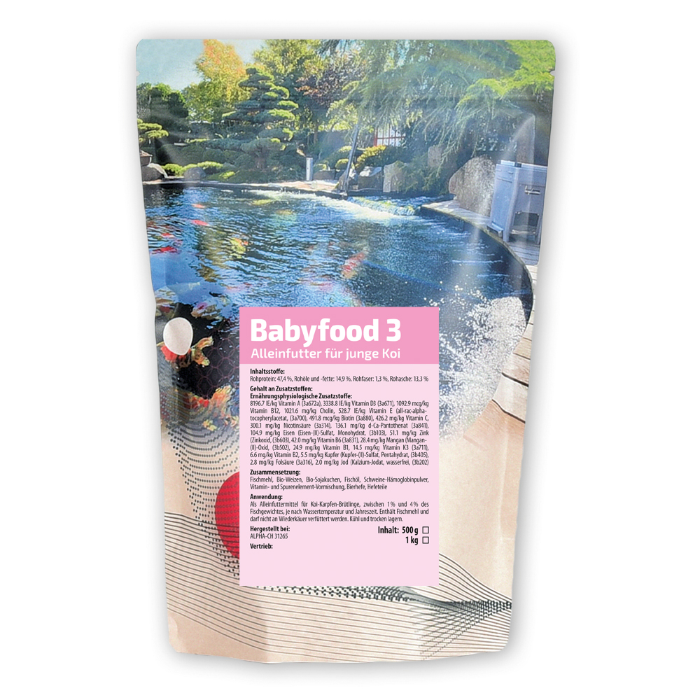 Die Inhaltsstoffe sind so abgestimmt, dass Deformierungen bei Jungfischen rapide zurückgehen und ein optimales Größenwachstum erreicht wird. Durch die Zugabe von farbverstärkenden Substanzen erkennen Sie sehr frühzeitig die Farbe der Jungtiere.