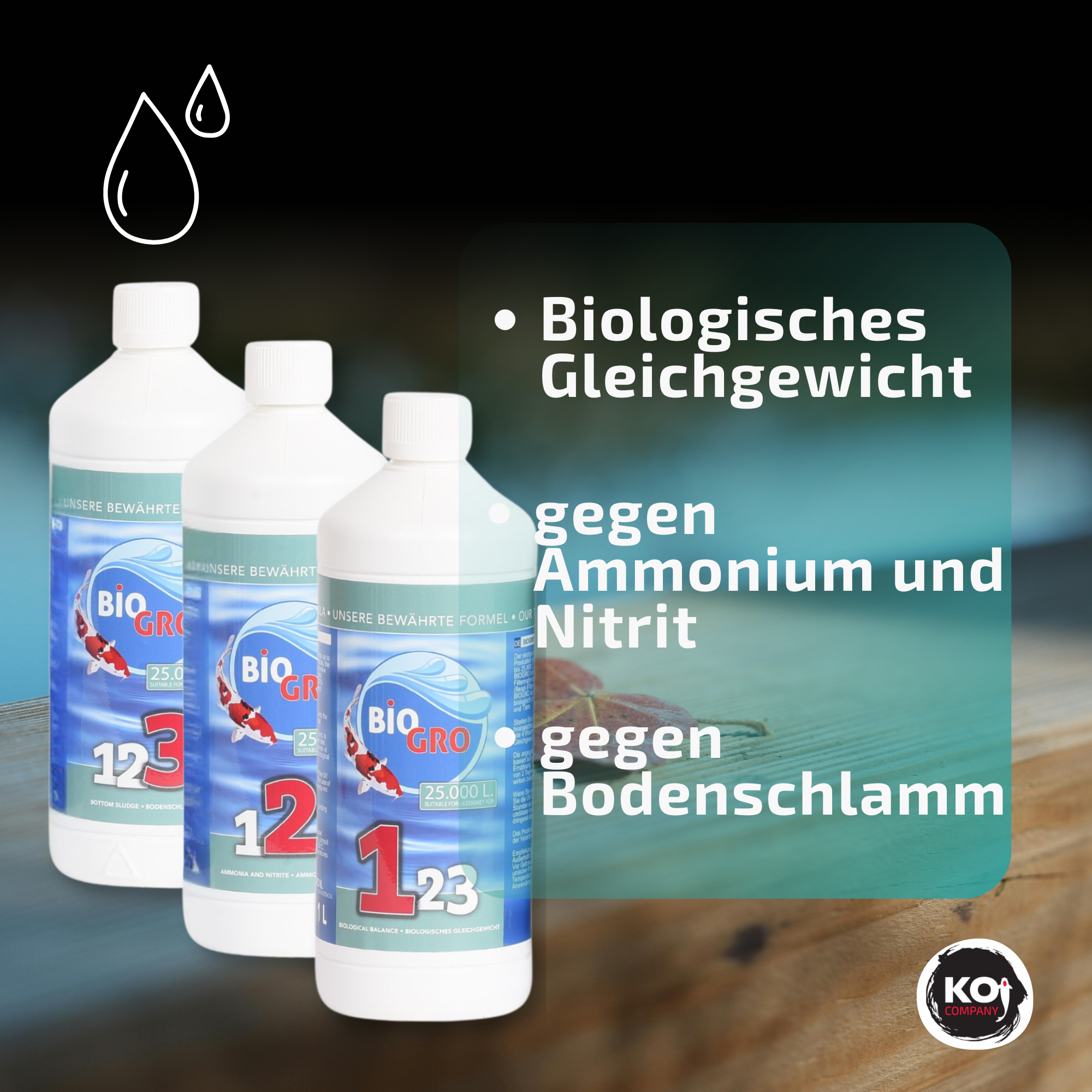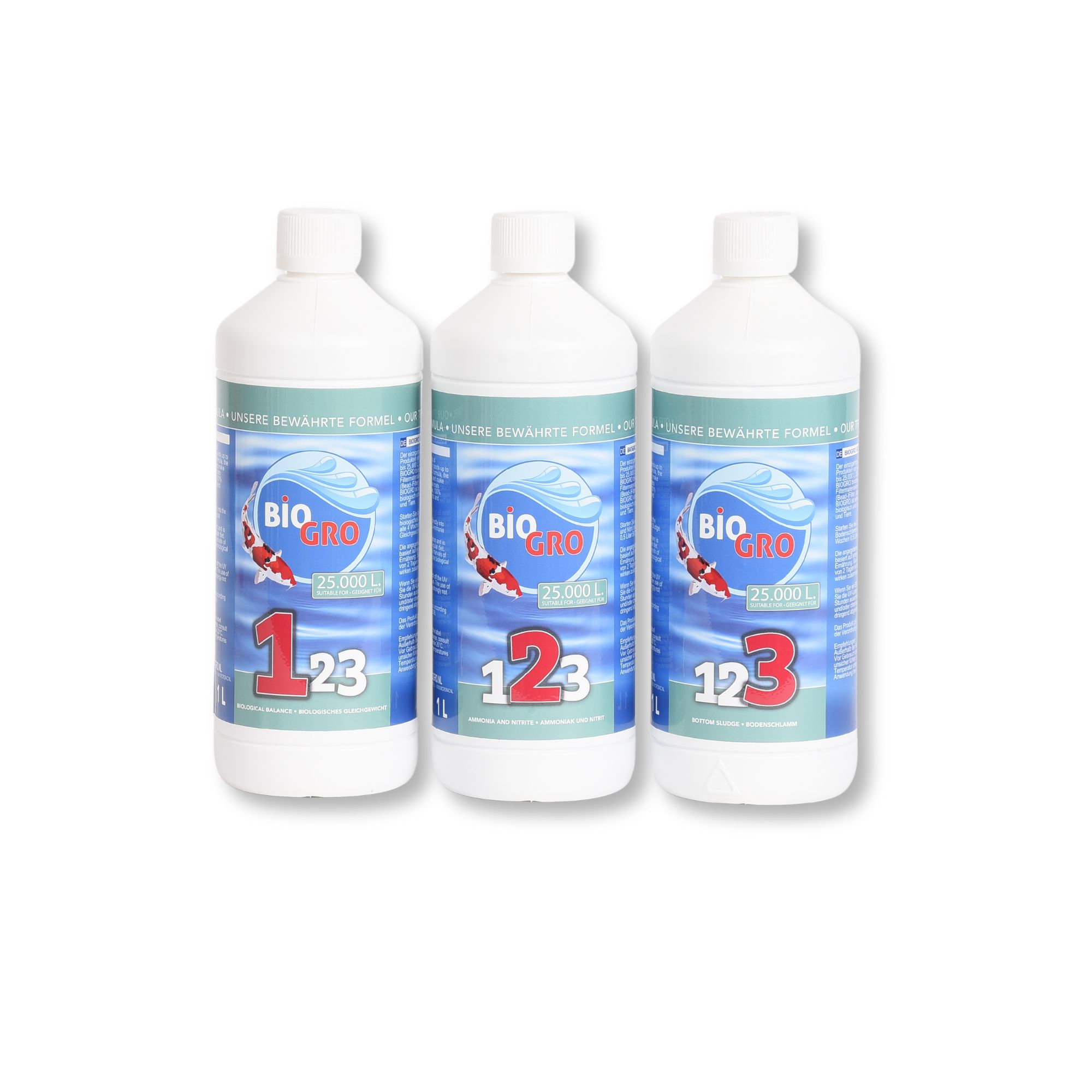 Biogro - 3 Stufenplan für: Biologisches Gleichgewicht - Gegen Ammonium und Nitrit - Gegen Bodenschlamm