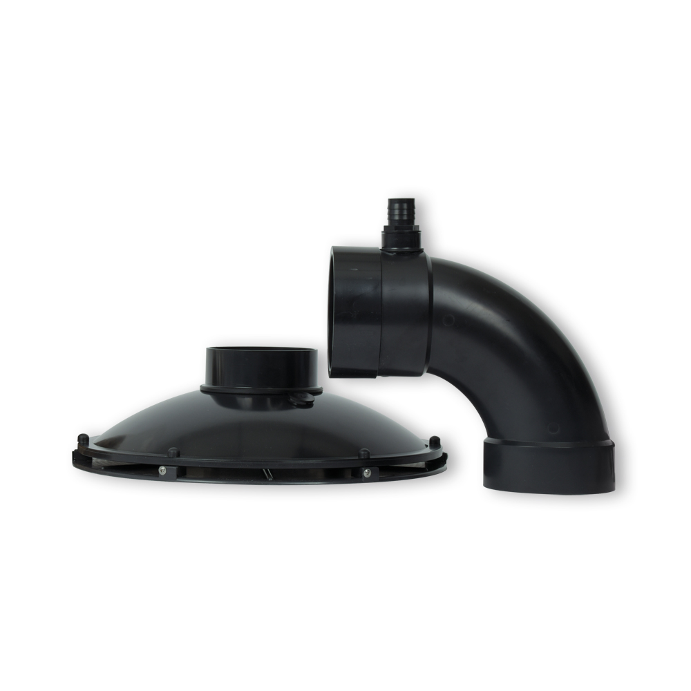 Dieser Bodenablauf ist für den nachträglichen Einbau. Der Bodenablauf wird auf dem Boden plaziert. Mit einem 110mm Druckrohr (nicht im Lieferumfang enthalten) geht man bis in den Bogen 90°C. Um einen guten Durchfluss zu erzielen, muss sich der Bogen mindestens 40cm unterhalb der Wasseroberfläche befinden. Von dort aus führt man die Leitung bis an den Rand des Teiches, wo man mit Hilfe eines Flansches das Rohr aus dem Teich führen kann. Der Bodenablauf wird mit PE Bodenplatte und Füllung zur Beschwerung geliefert. Der Bodenablauf mit Seitenabgang ist mit einem 25 mm Abgang versehen. Diese Öffnung muss mit 25 mm Rohr oder 9 mm Luftschlauch an die Oberfläche gebracht werden, um ein Vakuum zu verhindern. Ein Stopfen zum Verschließen liegt auch bei.