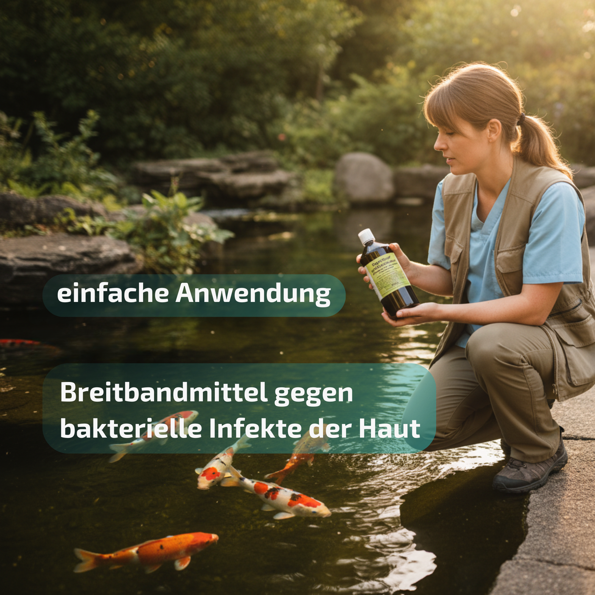 Es ist eines der wenigen Teichpflegeprodukte, die auch Aeromonas- und Pseudomonasbakterien wirksam abtöten. Zusätzlich bekämpft es durch seine Zusammensetzung auch einzellige Parasiten wie Ichtyo, Trichodina und andere Hauttrüber.