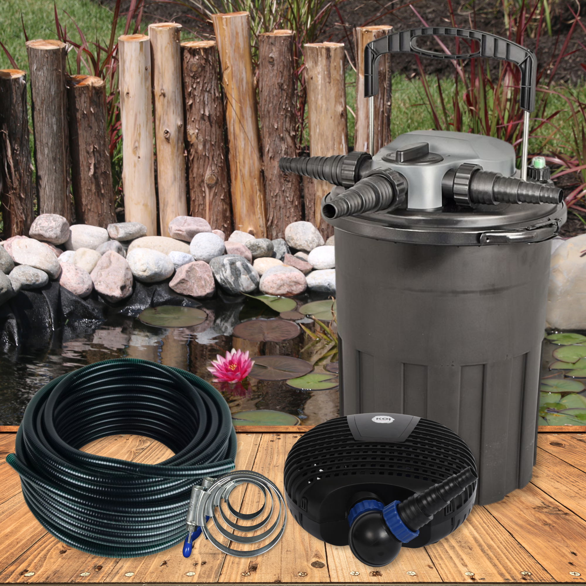 • Komplett-Set inkl. Druckfilter, Pumpe, Schlauch und Schellen – einfach anschließen und starten