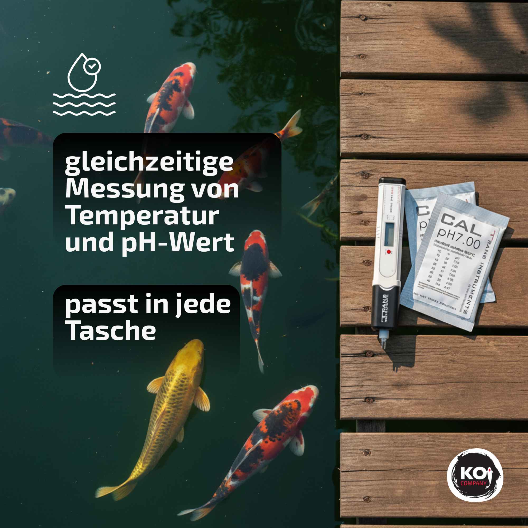 • pH-Meter und Thermometer in einem, passt in jede Tasche