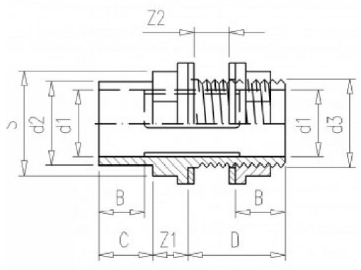 | (d1) Innendurchmesser | (d2) Außendurchmesser links | (d3) Außendurchmesser rechts | Z1 | Z2 | B | C | D | S |