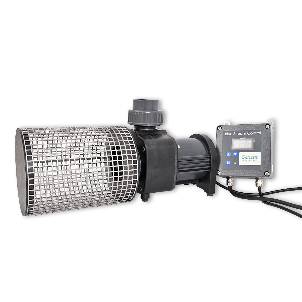 Die weiterentwickelte Pumpe EVO Blue Stream Control 15.000 mit 24 Volt aus dem Hause Genesis ist mit 15.000 Liter Fördermenge pro Stunde und nur 100 Watt Stromverbrauch eine echte Innovation.