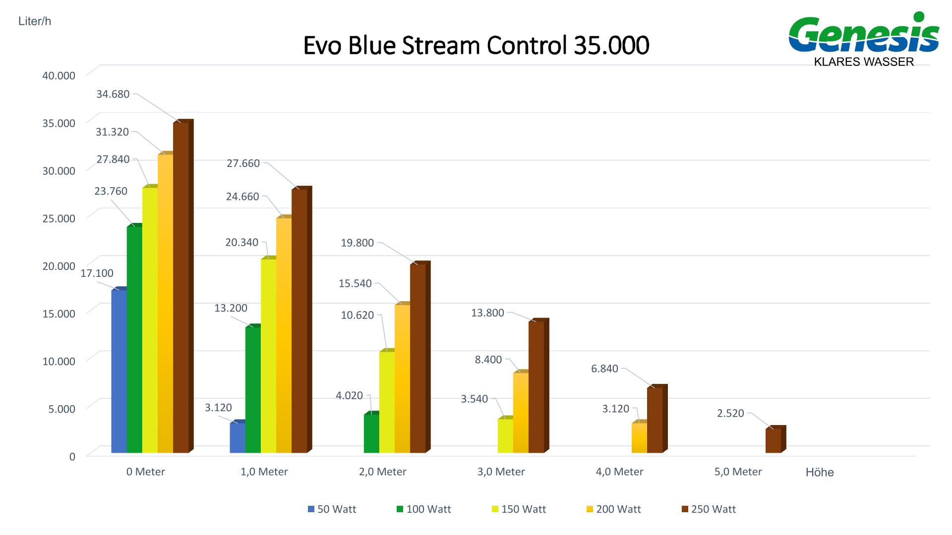 Die weiterentwickelte Pumpe EVO Blue Stream Control 35.000 aus dem Hause Genesis ist mit 35.000 Liter Fördermenge und nur 250 Watt Stromverbrauch eine echte Innovation.