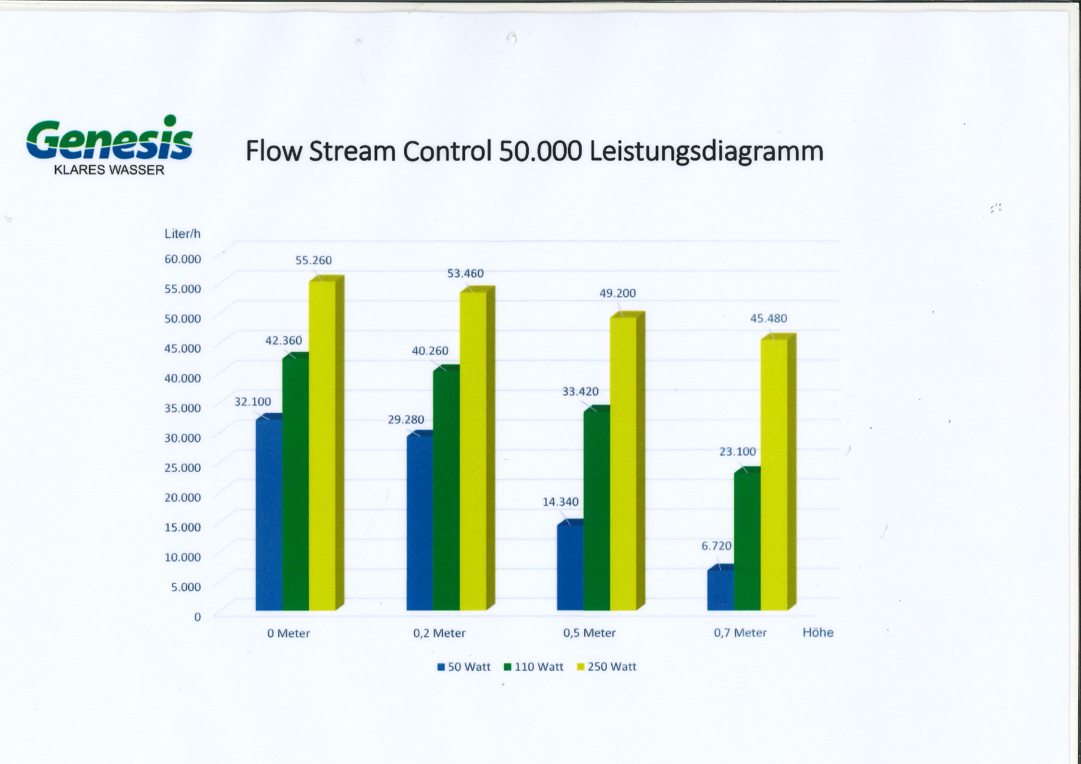Bei einer Förderhöhe von 0,2m verbraucht Sie bei 40.260 Liter Fördermenge nur  110 Watt.  Bei einer Förderhöhe von 0,5m verbraucht Sie bei 33.420 Liter Fördermenge nur  110 Watt.