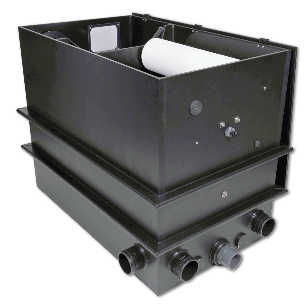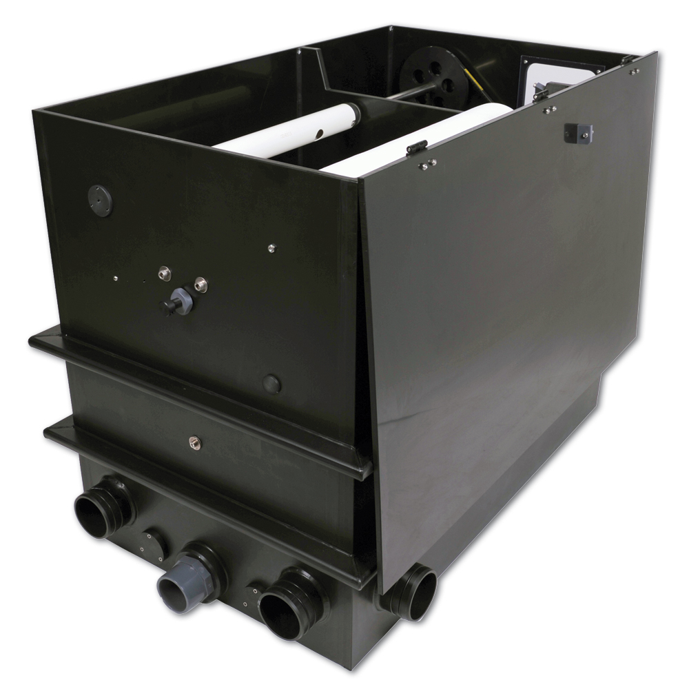 Die Funktionsweise des Filters ist so einfach, das es schon fast unglaublich klingt. Eine Pumpe fördert das Wasser in den Filter. Das Wasser muss durch Papiervlies, das sofort alle Schwebepartikel zurückhält. Das saubere Wasser gelangt in die Biostufe, in der nun gelöste Stoffe wie Ammonium und Nitrit abgebaut werden und von dort gelangt das Wasser wieder zurück in den Teich. Mit der Zeit verstopft das Filtervlies immer mehr und der Wasserstand im Filter steigt an. Über einen Überlauf wird eine Mechanik in Bewegung gesetzt, die das Filtervlies automatisch und ohne Strom weiterbefördert, bis wieder genügend Wasserfluss erreicht wird. Somit wird ein Überlaufen oder eine Filterunterfunktion verhindert.