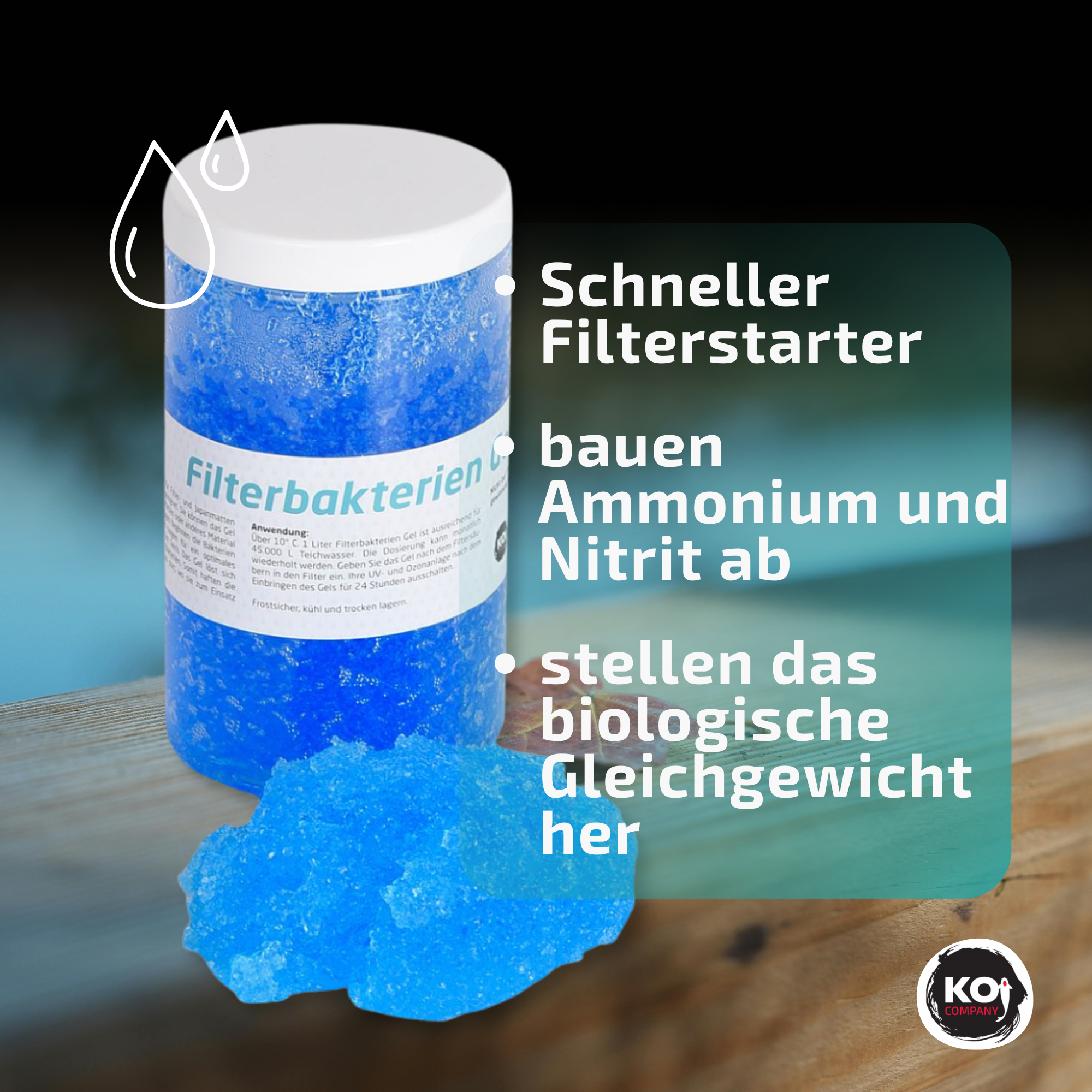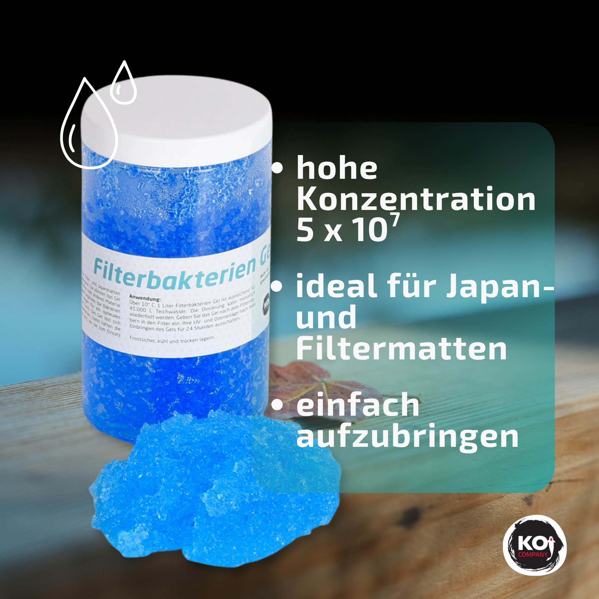 1 Liter Filterbakterien Gel ist ausreichend für 45.000 L Teichwasser.