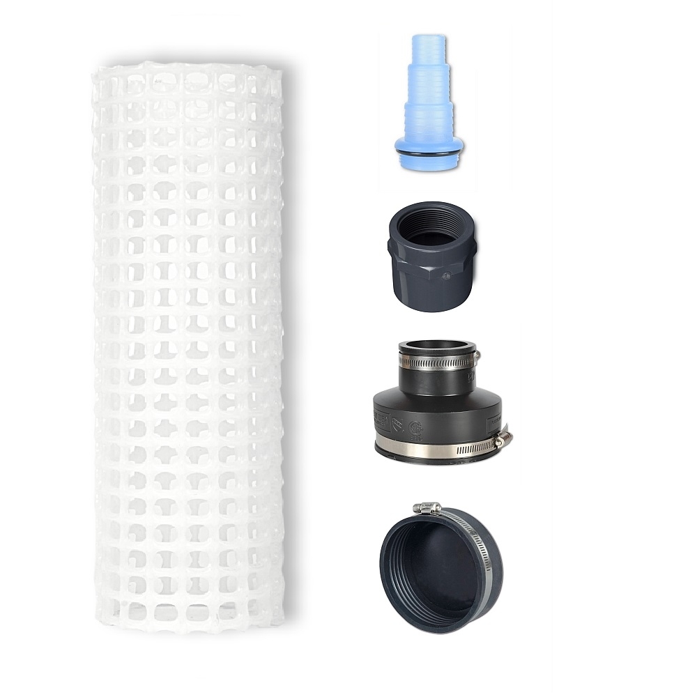 Ein weiteres Einsatzgebiet des Filterrohres ist die Verwendung als Schmutzkorb. Für eine Pumpe kann das Rohr direkt aufgeschraubt werden. Dafür bestellen Sie die flexible Reduziermuffe mitsamt einer Gewindemuffe, die für Ihre Pumpe passend ist. Dann drehen Sie das Rohr einfach drauf.