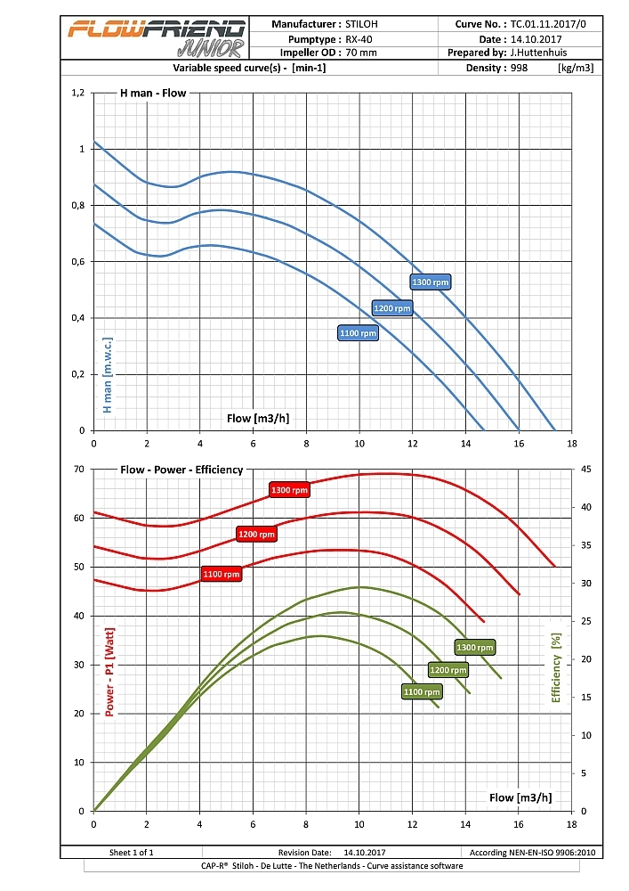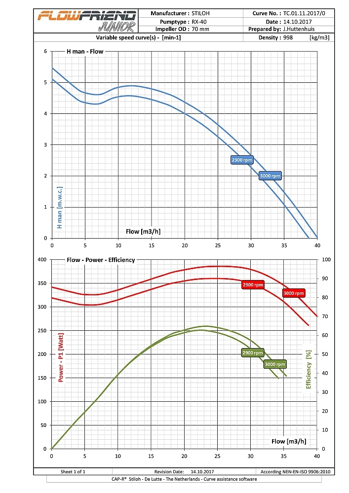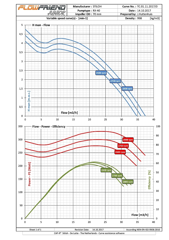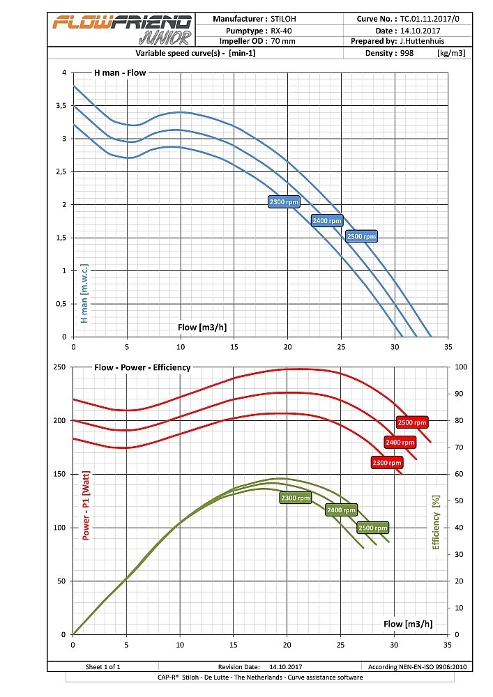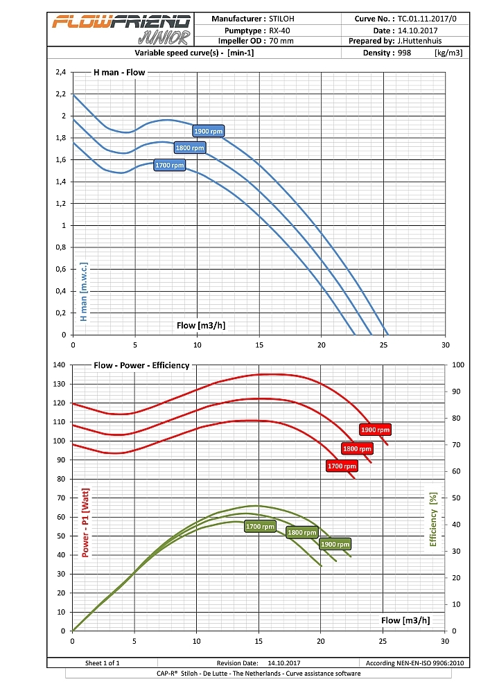 Die FlowFriend Junior besitzt eine von der Pumpe getrennte Steuerelektronik und ist für geringere Anforderungen gebaut. Sie verpumpt bis zu 40 m3/Stunde und weist einen Maximaldruck von 7 m WS auf.