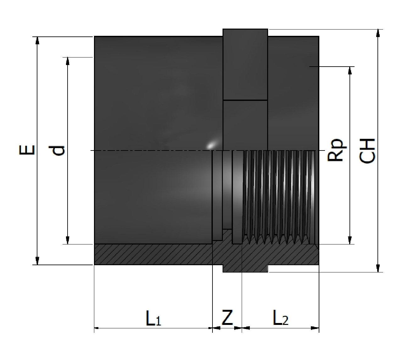 (d) Innendurchmesser links (Rp) Innendurchmesser rechts  L1 L2 Z E CH PN Gewicht
