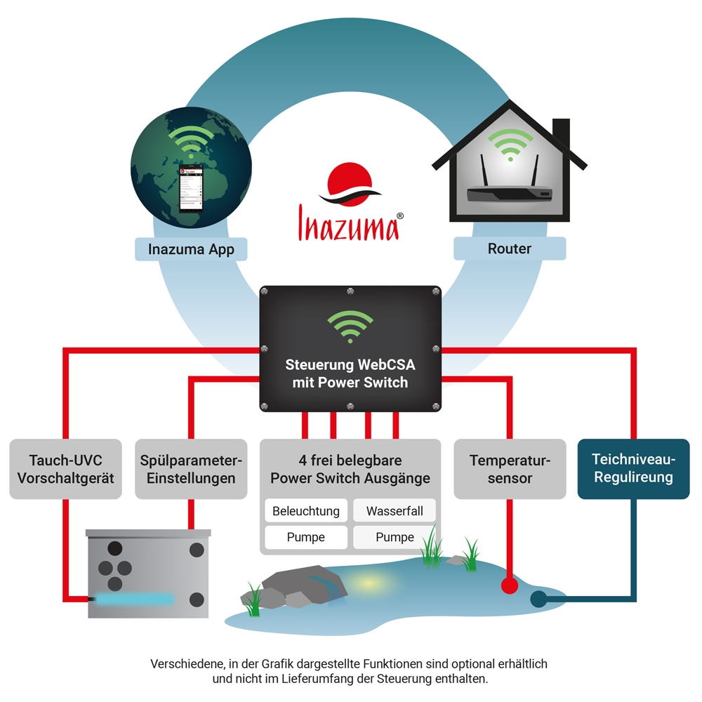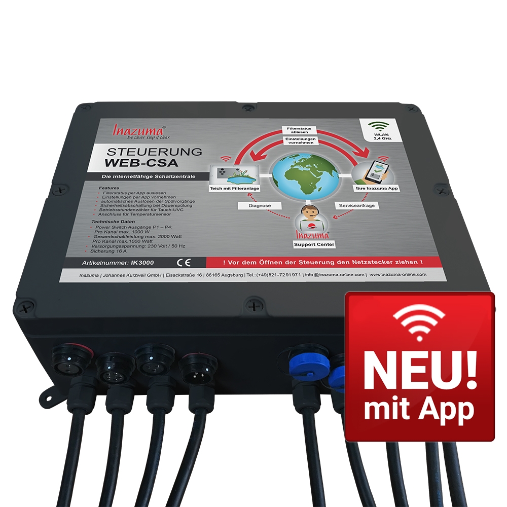 Für noch mehr Komfort und Flexibilität, mit der kostenfreien INAZUMA App können Sie viele Parameter bequem per Handy oder Tablet von der ganzen Welt aus einsehen und steuern. Das System ist durch PowerSwitch-Erweiterung, Temperatursensor und Niveauregulierung individuell an Ihre Bedürfnisse anpassbar. Die Steuerung Professional-Wifi kann auch ohne Internetverbindung mit der App genutzt werden.