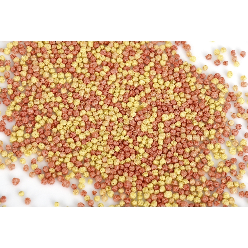 Zusammensetzung: Maismehl, Weizenmehl 30%, Reismehl, Lachsmehl, Sojamehl, Weizenkeimmehl 6%, Garnelenmehl 2%, Spinatmehl 2%