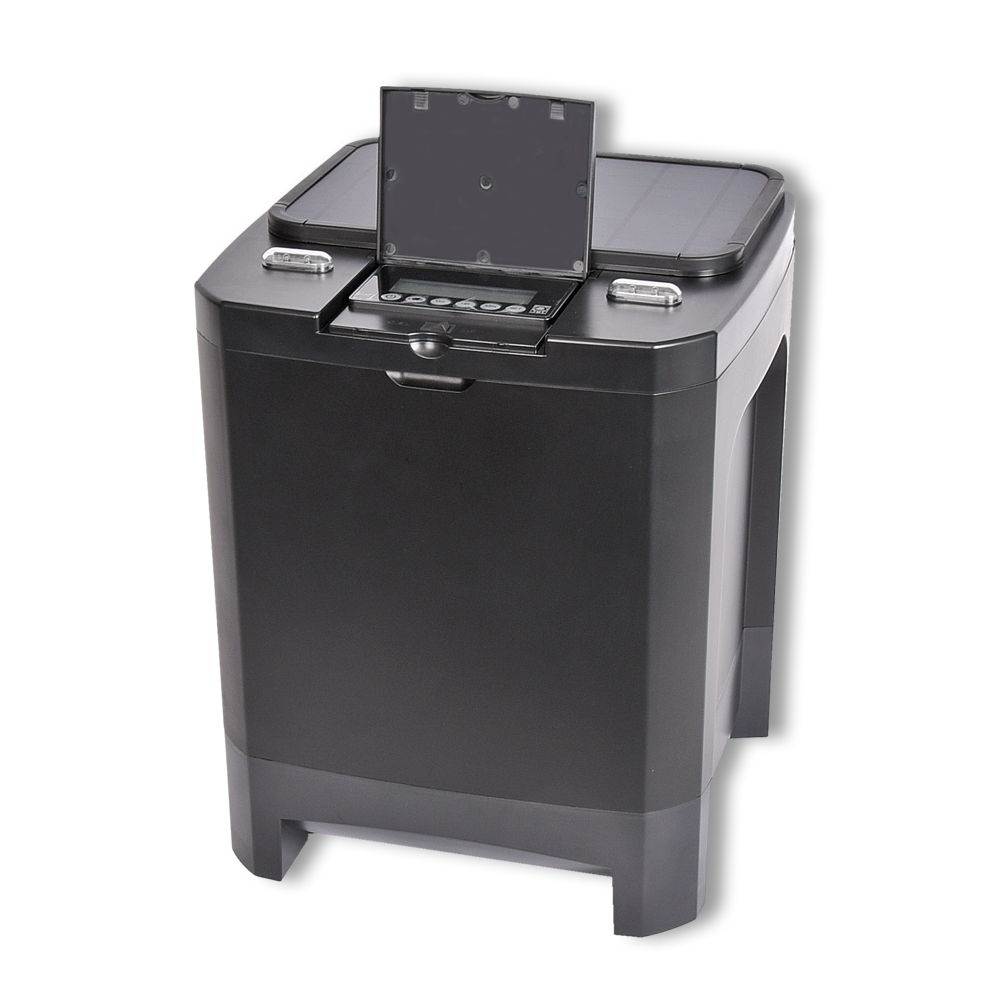 Der Betrieb kann entweder über ein 5 Meter langes Netzkabel oder dem integriertem Solarpanel mit Li-Ionen Akku (7200 mAh) erfolgen.
