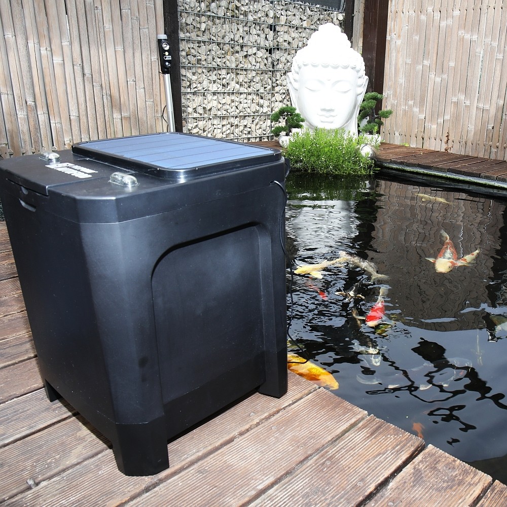 Mit dem JBL ProPond Autofood bieten wir einen programmierbaren Futterautomaten mit großem Fassungsvermögen an. Der Automat fasst bis zu 25 Liter und könnte durch seinen breiten und einstellbaren weiten Auswurf von 0,5 – 1,0 Meter auch bei jedem japanischen Züchter dankend zum Einsatz kommen.