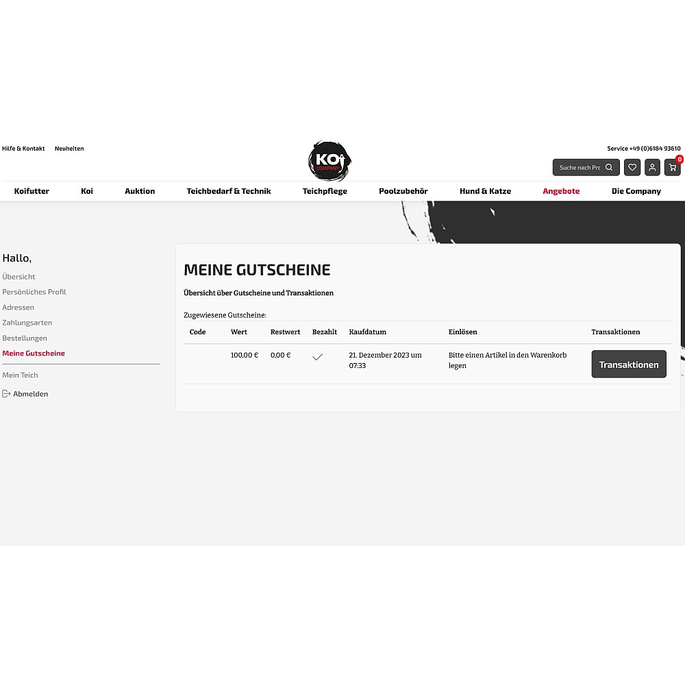 Sie haben Fragen zu Koi Company Geschenkgutschein?