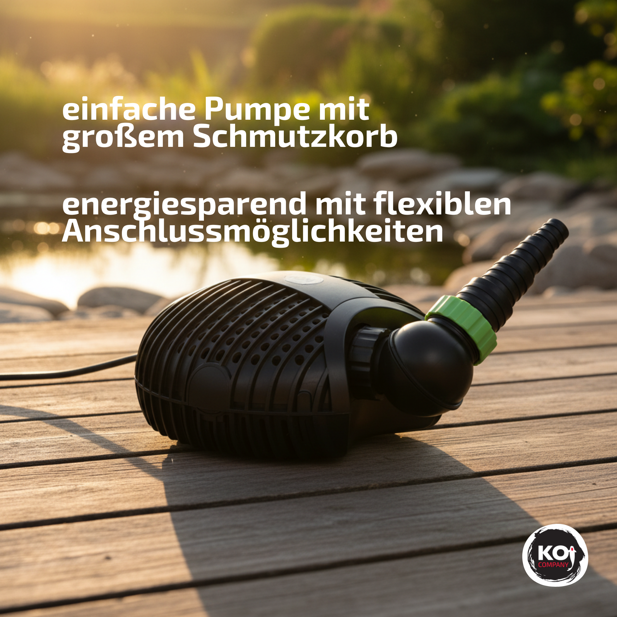Energiesparende Teichpumpe mit flexiblen Anschlussmöglichkeiten