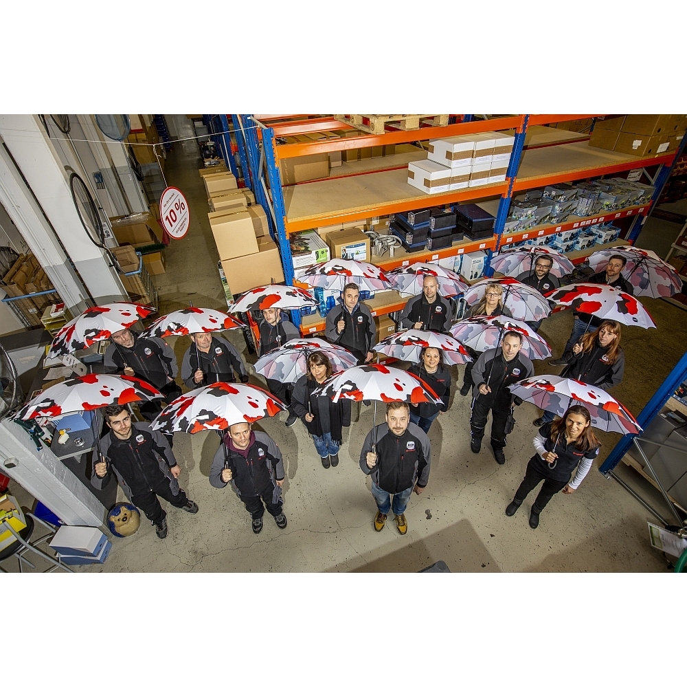 Der klassische Automatik Stockschirm. Stabil, formschön, mit Antirutsch Stopp und exklusivem Druck auf satiniertem Polyester-Gewebe.