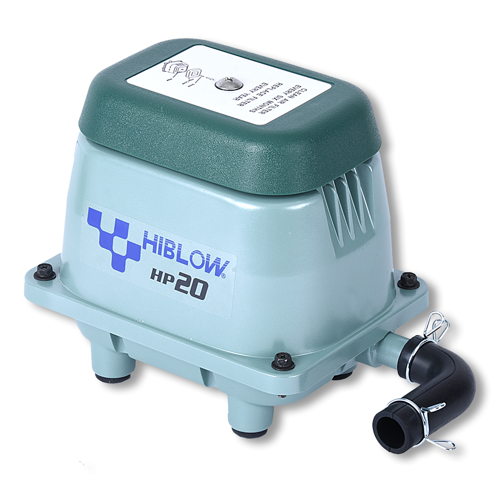 Eine Hiblow HP 20 erzeugt 20 Liter Luft pro Minute. Hier sollten Ausströmer gewählt werden die auch 20 Liter pro Minute Luft ausströmen lassen.