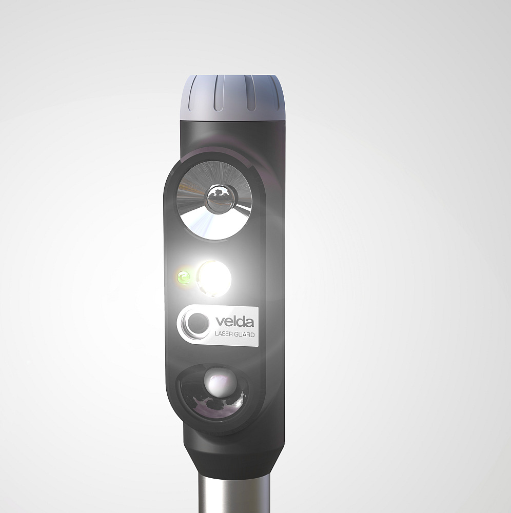 Der Bewegungssensor des Laser Guard detektiert ankommende Eindringlinge und hat eine Reichweite von ca. 12 m in einem Winkel von 100°. Normalerweise wird der Reiher vor dem Landen erschrocken. Die Wirkung ist sehr effektiv gegen u.a. Reiher oder Katzen auf drei verschiedene Arten: