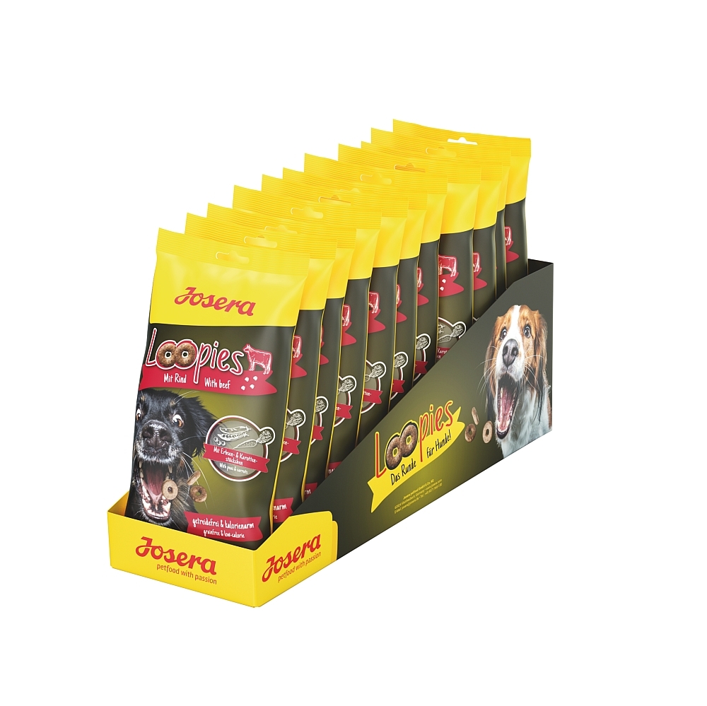 Die JOSERA Loopies sind für alle, die auch bei Snacks auf eine bewusste Ernährung Ihres Hundes achten wollen. Die knackigen Kroketten lassen sich ganz einfach teilen. Auf den Zusatz künstlicher Farb-, Aroma- & Konservierungsstoffe wurde auch bei unserem Hundesnack verzichtet.