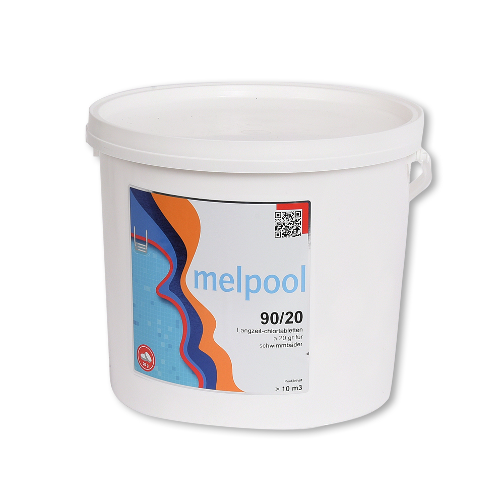 Die Melpool 90/20 langsam, löslichen Chlortabletten sind Ideal zur kontinuierlichen Desinfektion von Pools und Schwimmbecken unter 30m³.