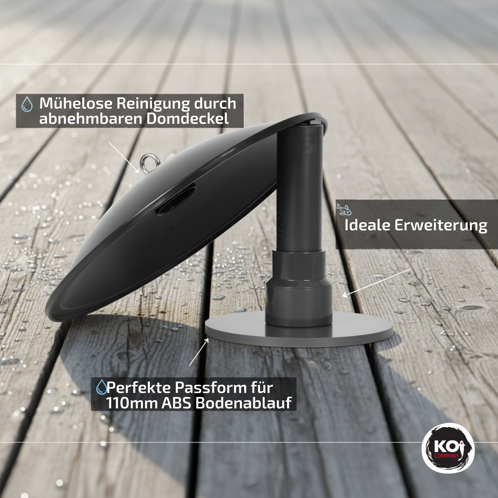 Den Nachrüstsatz für den Bodenablauf aus ABS mit abnehmbarem Domdeckel haben wir extra für uns entwickeln lassen. Dieser kann bei schon bestehenden Bodenabläufen nachgerüstet werden.