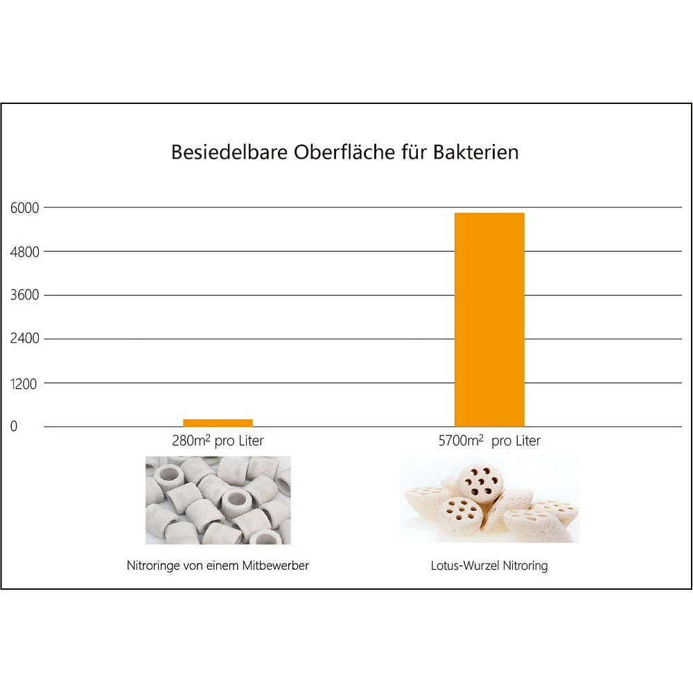 • Besiedelbare Oberfläche für Bakterien: 5700m2 pro Liter