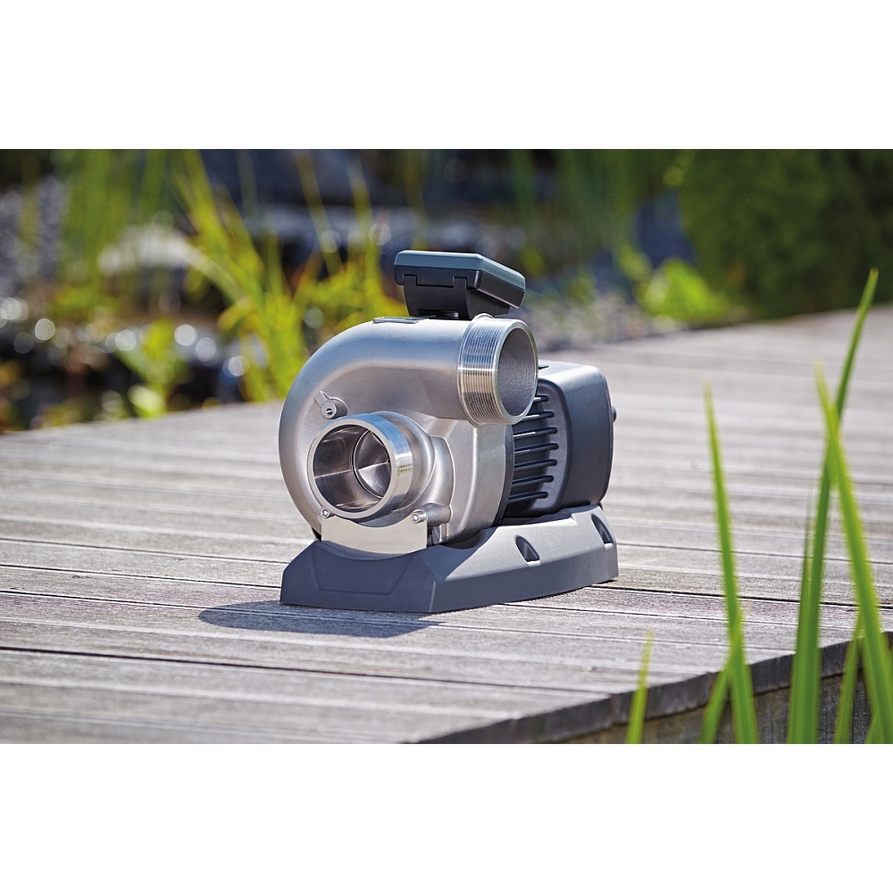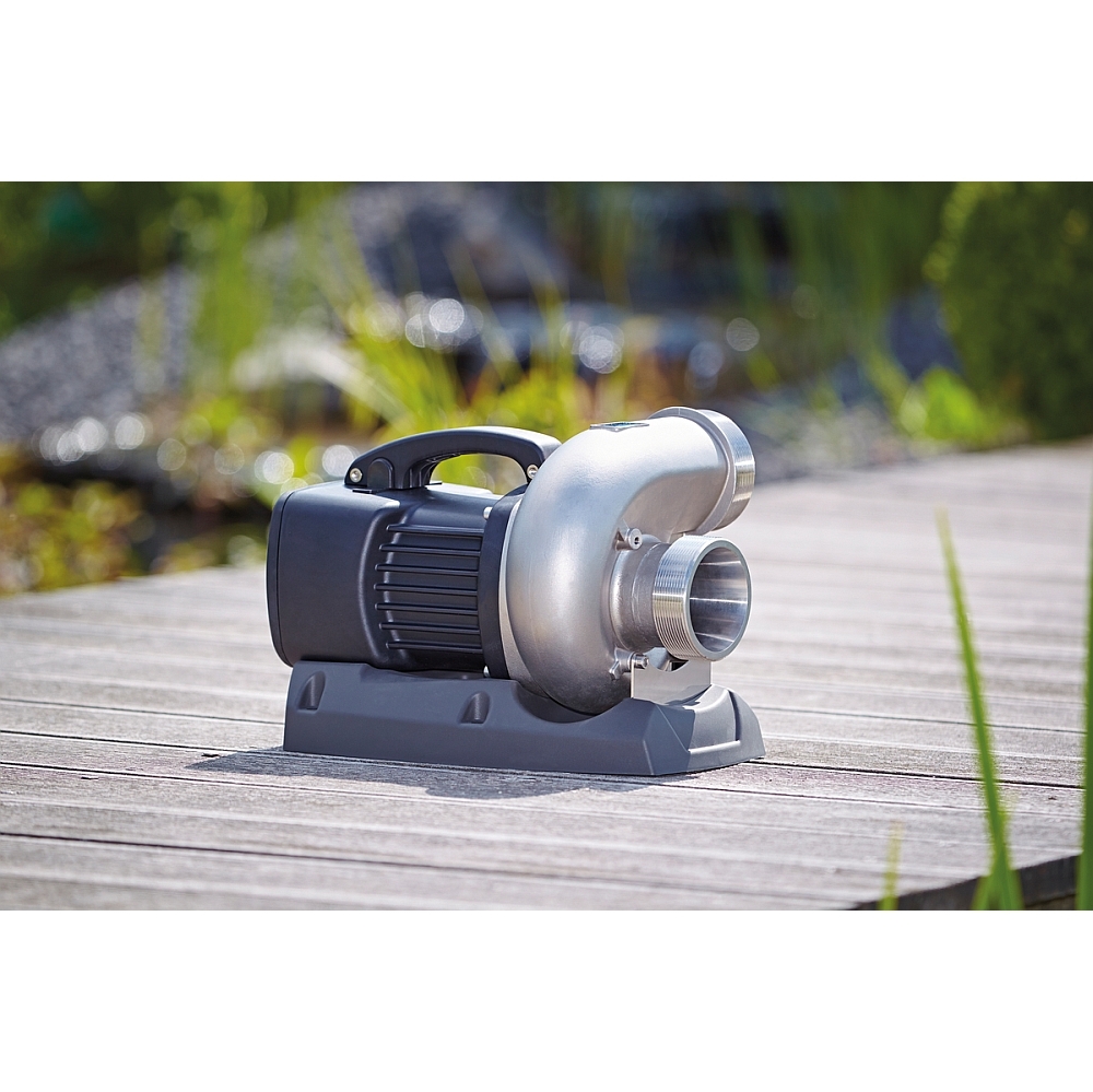 Die größte Pumpenserie von Oase, was die Wassermenge betrifft. Diese Pumpen sind für große Teiche ausgelegt, wenn keine Höhe überwunden werden muss. Der Wirkungsgrad durch strömungsoptimierte Hydraulik ist hervorragend. Das Laufrad überzeugt durch extreme Langlebigkeit. Eine Schmutzförderung bis 6 mm ist gewährleistet. Das Pumpengehäuse ist aus Edelstahl gegossen und der große Standfuß sorgt für stabilen Stand.