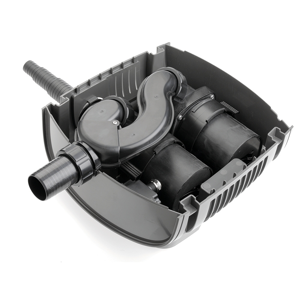 Der patentierte »intelligente« Klappmechanismus im Inneren der AquaMax Eco Twin sorgt bei Benutzung nur eines Motors für die optimale Ausnutzung der jeweiligen Einzel-Fördermengen.