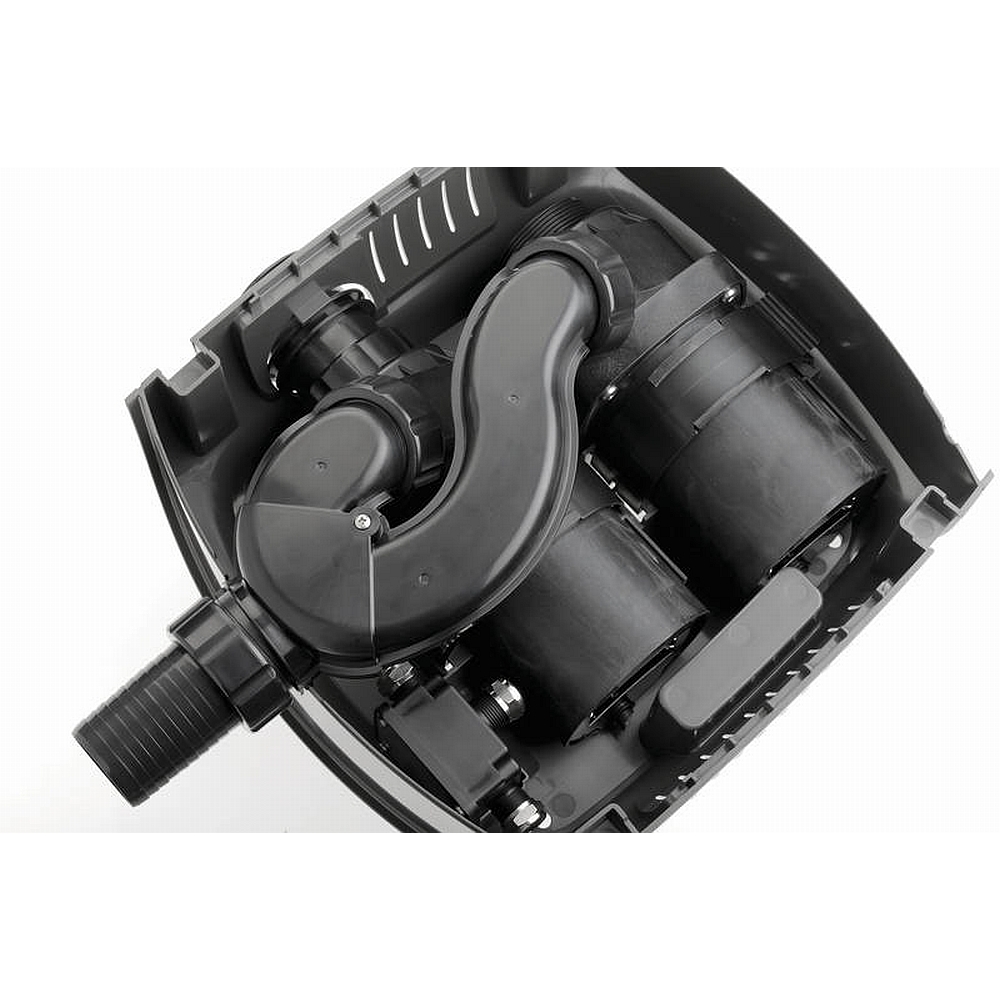Diese kraftvolle Filterpumpe arbeitet mit zwei Motoren. Die Motoren sind synchron per Funkfernbedienung regelbar. Eine Digitalanzeige zeigt die Leistungsstufe an. Zusätzlich zur Filterkorbansaugung kann entweder ein Skimmer, umgekehrter Bodenablauf oder ein Ansaugkorb genutzt werden.