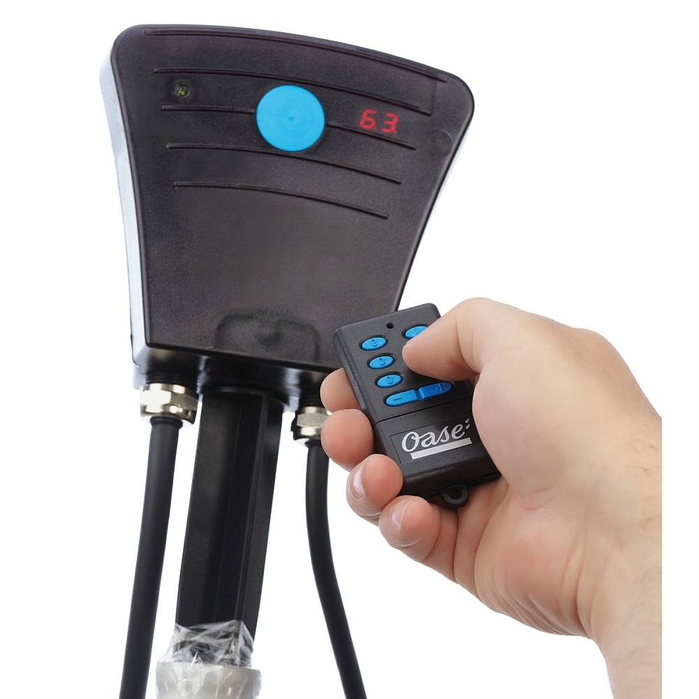 Beide Pumpentypen besitzen eine Funkfernbedienung, mit der die Motoren ein- oder ausgeschaltet bzw. zusammen reguliert werden können.