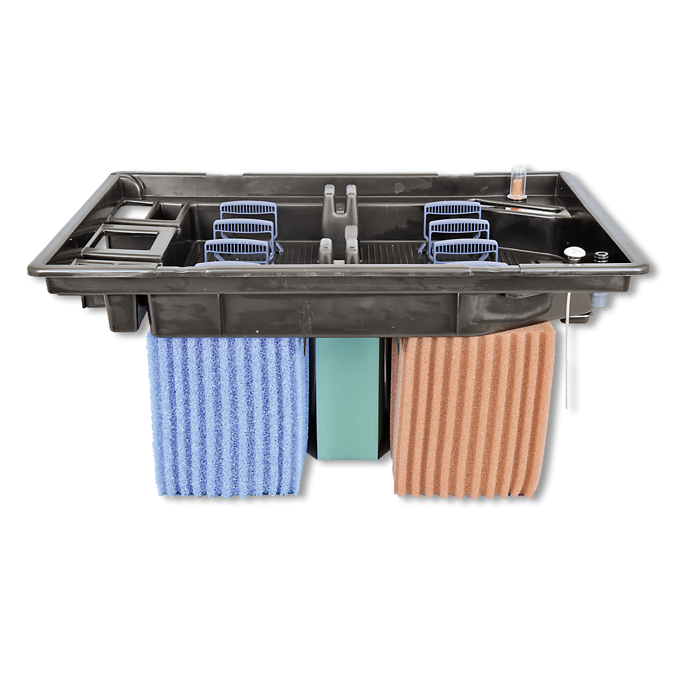 Durch die Kombination von groben und feinen Filterschaumstoffen kann Ihr Teich optimal gefiltert werden.