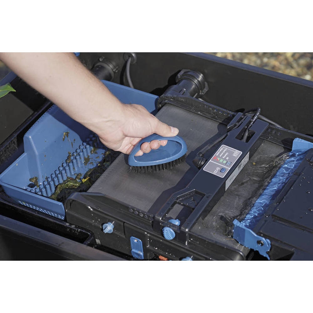 Das Filterband wird durch die Drehung vom groben Schmutz selbst gereinigt. Die justierbare Reinigungsautomatik steuert den Bandlauf anhand der Verschmutzung, inkl. LED-Kontrollleuchte. Ein manueller Bandlauf ist mittels einer Taste immer möglich.