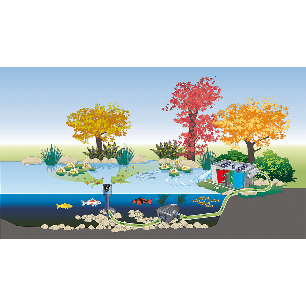 Doppelläufige Pumpen von Oase eignen sich als ideale Kombination mit dem Skimmer und können über Ihren zweiten Eingang ganz einfach über eine Schlauchverbindung zwischen Pumpe und Skimmer angeschlossen werden.