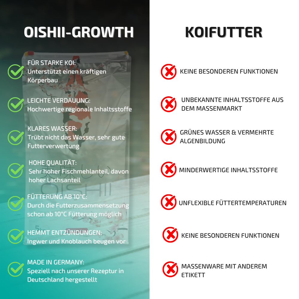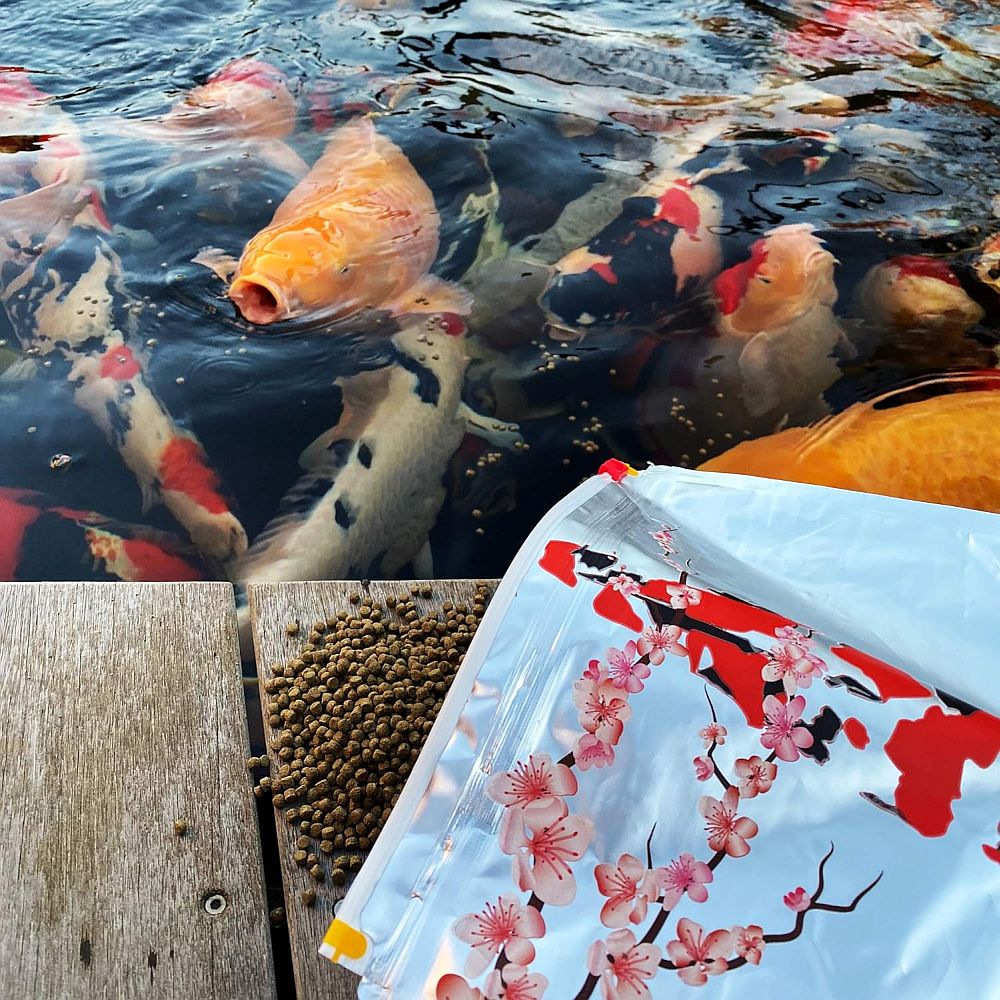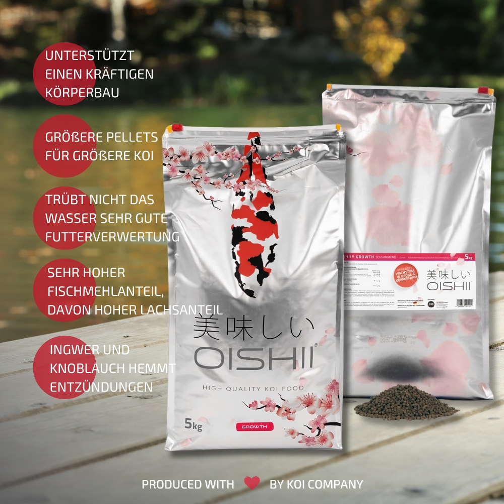 Oishii bedeutet Lecker! Und das muss ein Futter bekanntlich sein, damit unsere Koi es gerne fressen.