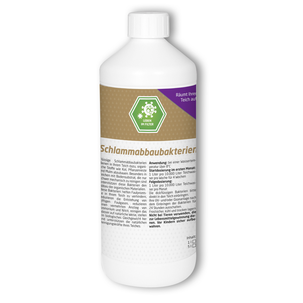 Für Wassertemperaturen über 12°C geeignet. Die Schlammabbaubakterien helfen Ihnen beim Abbau organischer Stoffe. Das Endabbauprodukt muss mechanisch herausgefiltert werden.