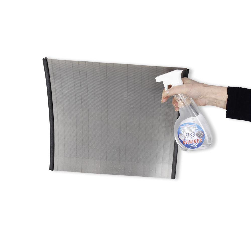 Der neue Siebreiniger in der praktischen Sprühflasche kann hier zielgerichtet eingesetzt werden und Schmutz und Kalk effektiv zu beseitigen. Bei starkem Schmutz sollte eine weiche Bürste zur Hilfe genommen werden.  Eine monatliche Anwendung ist ratsam um der Verkalkung des Siebes vorzubeugen.