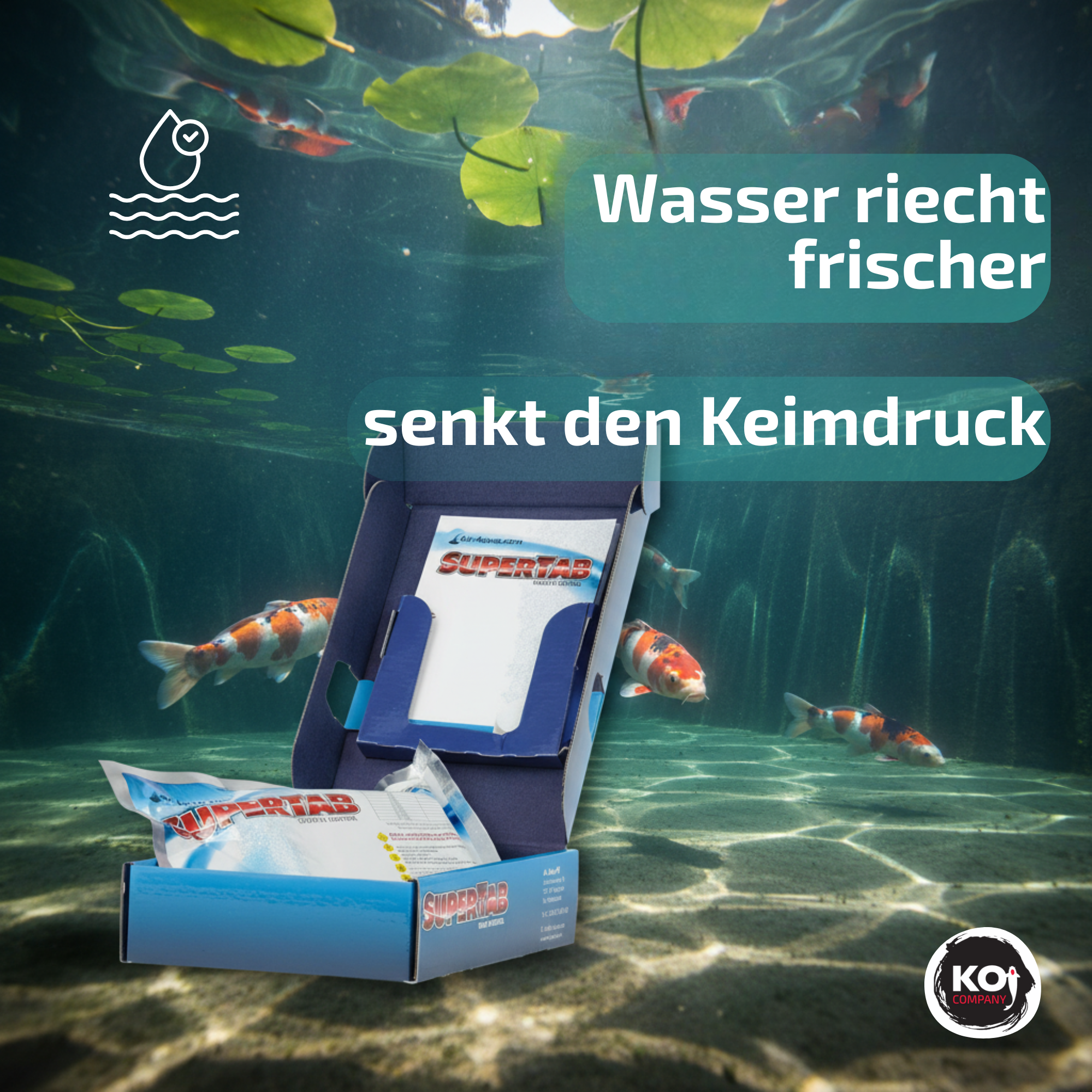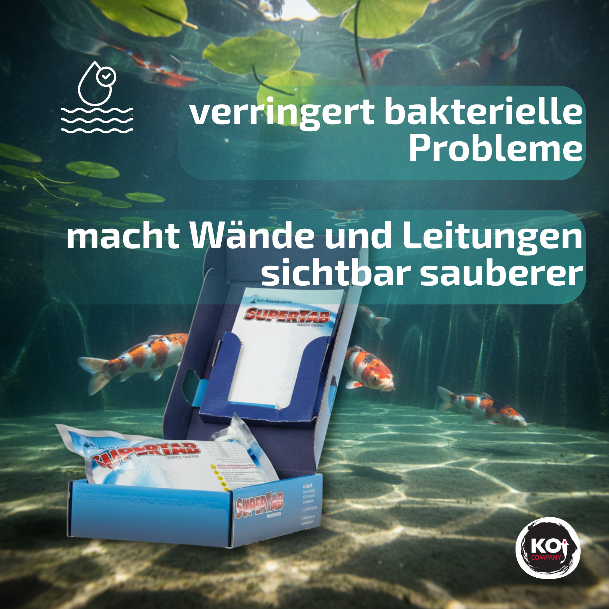 Eine SuperTab reicht für 50.000 Liter Teichwasser.