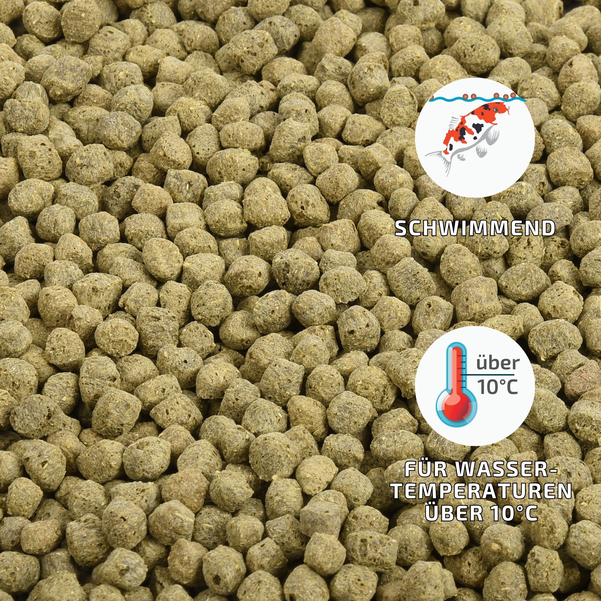 Dieses Futter beinhaltet keine künstlichen Farbstoffe. Daher ist diese Koifutter deutlich farbreduzierter als vergleichbare Futter. Wasserverfärbungen werden dadurch aber verhindert. Farbstoffe werden dem Futter zugesetzt, damit der Koihalter sich freut und denkt, er füttere ein ausgewogenes Futter. Für die Koi sind die Farben egal. Sie erkennen den Unterschied nicht. Und Ihr Wasser freut sich, wenn diese nicht im Futter enthalten sind, denn die Farbstoffe lösen sich mit der Zeit vom Pellet und färben nur das Wasser.