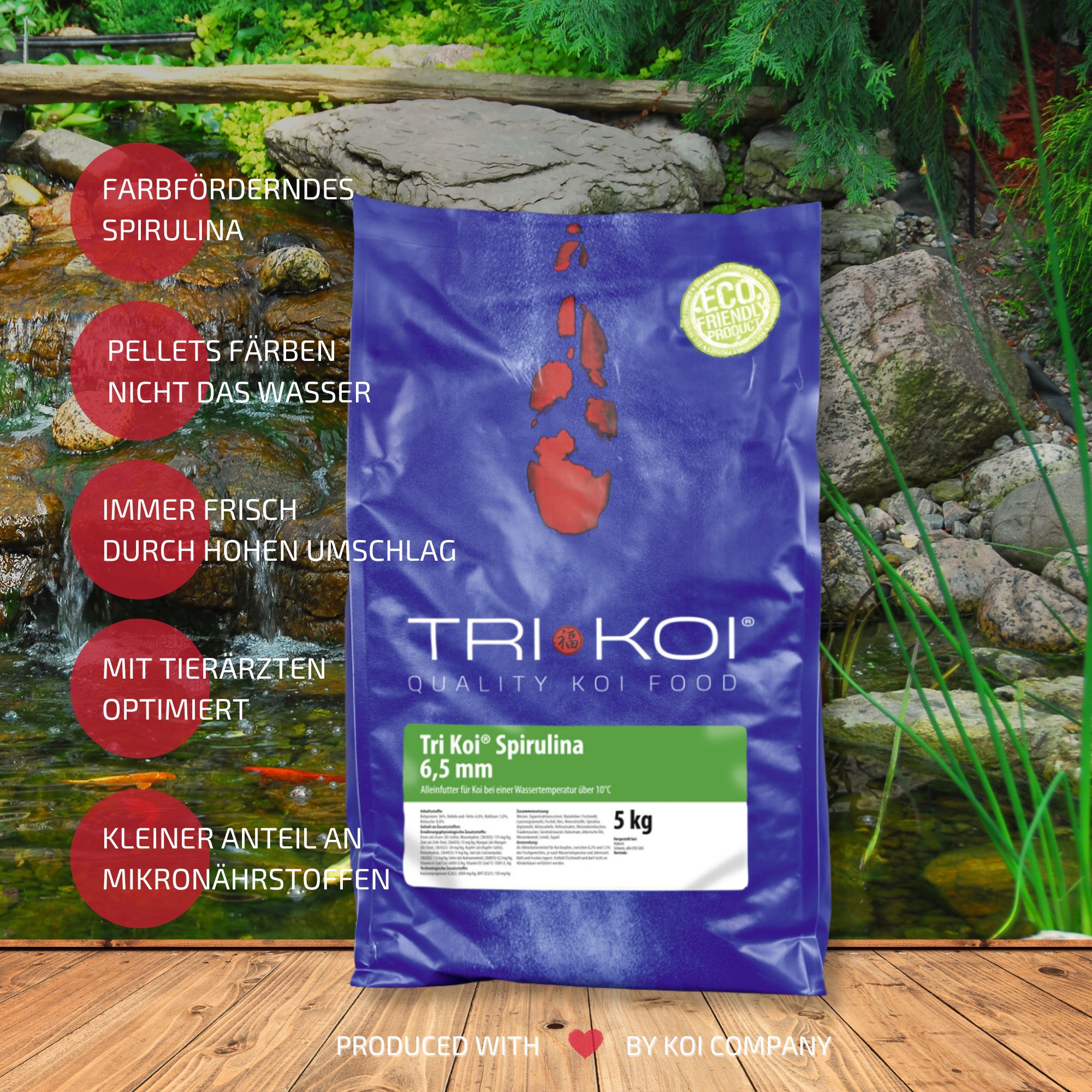 Bedingt durch unseren hohen Verbrauch erhalten Sie unser Tri Koi® Futter Spirulina immer absolut frisch.