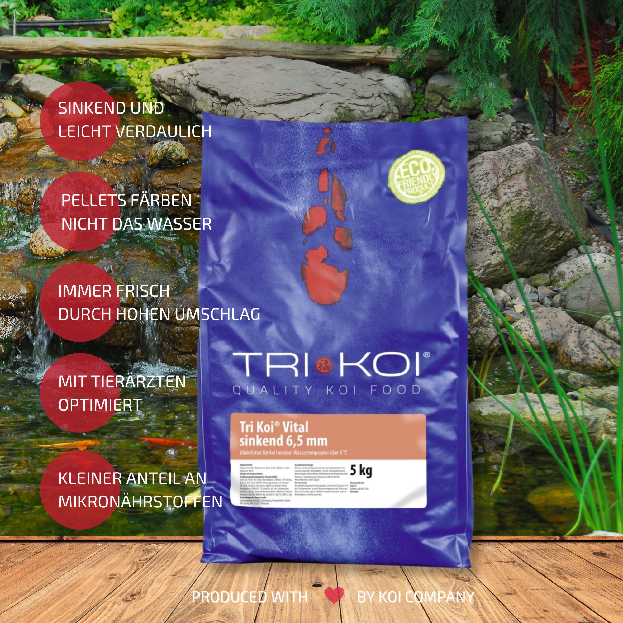 Bedingt durch unseren hohen Verbrauch erhalten Sie unser Tri Koi® Futter Vital immer absolut frisch.